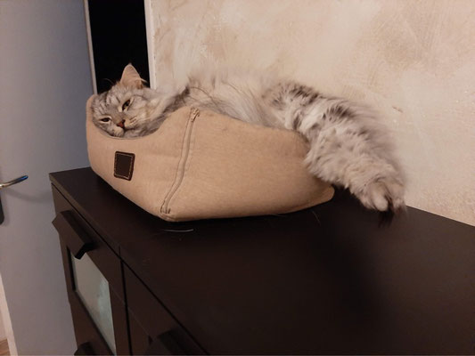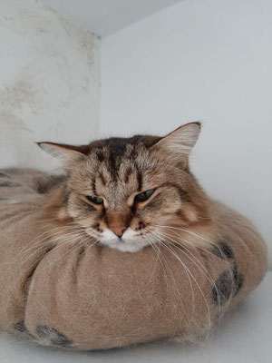 De plus, j’étais désespérée à l’idée de n’avoir jamais de chat, mon conjoint y étant allergique mais avec elle aucun problème. Je suis très contente d’avoir choisi cet élevage, on ne pouvait pas espérer mieux. »