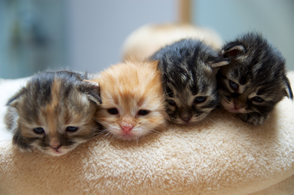 Un petit Brown, une petite Brown (enfin petite, elle domine la portée en poids et ossature !), un petit rouquin trop craquant et oh! surprise, une tortie !!!!!